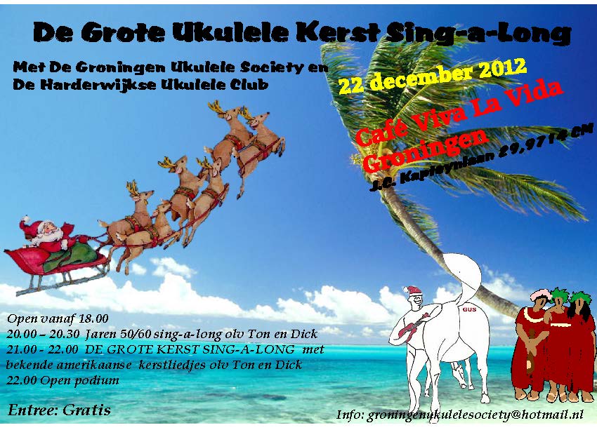 Op zaterdag 22 december 2012, vieren wij, de Groningen Ukulele Society samen met leden van de Harderwijkse Ukulele Club kerst met
