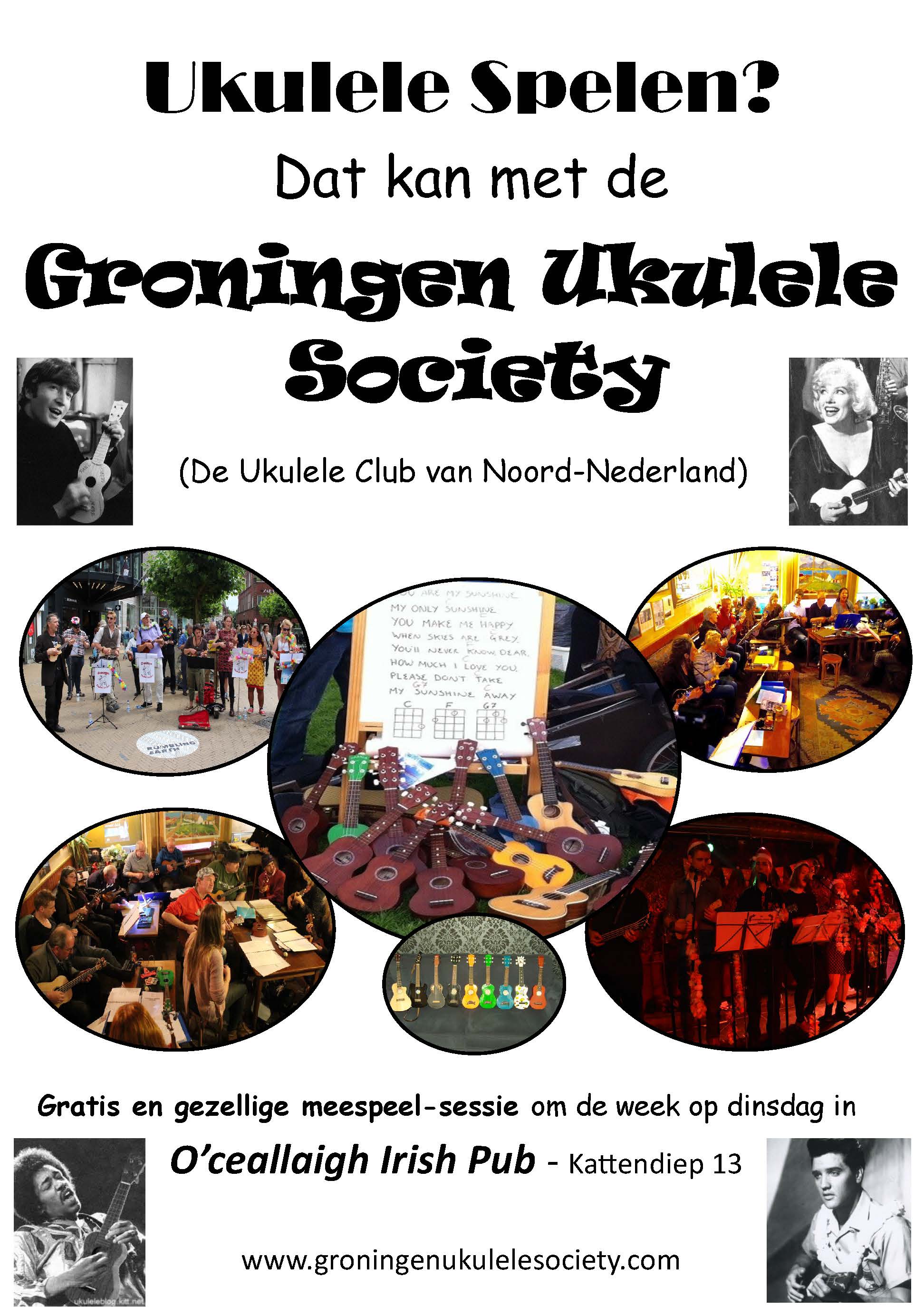 Groningen Ukulele Society is a ukulele club based in Groningen, Netherlands. We meet on a tuesday evening and welkome everyone to come and have a go or join in on that most wonderful and underestimated little instrument - The Ukulele